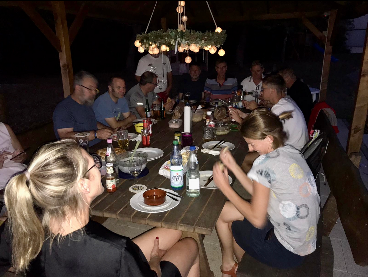 Nicht unzufrieden gingen wir dann am Abend zum gemütlichen Teil über – dass die nigelnagelneue Herdplatte nicht funktionierte und Eduard noch kurz nach Hause fuhr, um für Ersatz zu sorgen, konnte uns nicht ausbremsen. Es schmeckte ausgezeichnet und wir hatten nette, aufschlussreiche Gespräche.