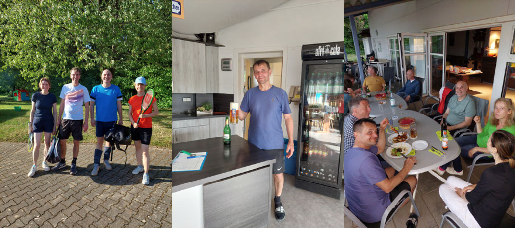 Ebenso wichtig ist der Wirtschaftsdienst, der meist von den Frauen übernommen wird. Er ist an den Abenden von Mai bis Juli zwischen 19.00 und 22.00 Uhr fester Bestandteil der Gemütlichkeit auf der Tennisanlage und sorgt gleichzeitig dafür, dass Küche und Thekenbereich sauber und gepflegt bleiben. Auch dabei wird im Team gearbeitet: es sind immer drei Personen für eine Woche (Mo – Fr) WD verantwortlich.