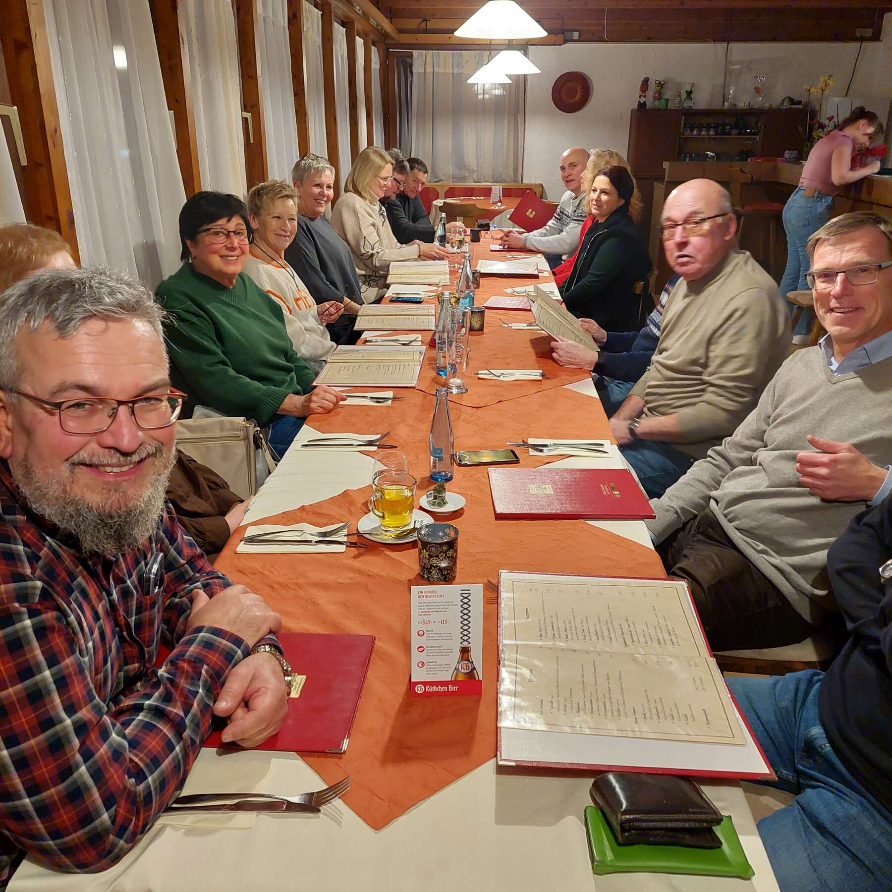 Anschließend ging es ohne weiteren Stopp weiter ins Gasthaus Waldblick in Degmarn. Dort wurden wir sehr freundlich empfangen und hervorragend mit gutbürgerlichen, schmackhaften Gerichten versorgt. Die Stimmung war super. Es wurde viel erzählt und gelacht. Trotz des ein oder anderen Schoppens traten wir auch den Heimweg zu Fuß an, dieses Mal aber auf dem kürzesten Weg am neuen Friedhof vorbei. Der helle Mond leuchtete uns sehr romantisch bis nach Hause. Ein harter Kern traf sich übrigens noch privat auf einen Absacker. Davon wird an dieser Stelle aber nichts berichtet, denn was privat ist, soll auch privat bleiben…