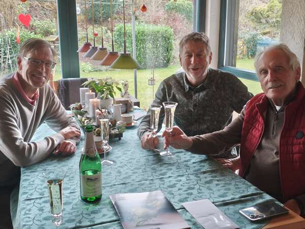 Eine besondere Freude ist es dem Vorstand, langjährigen Mitgliedern zum Geburtstag zu gratulieren. Am 13. Dezember konnte Jean Christophe Pilz seinen 75. Ehrentag begehen. Jürgen und Hans Dieter gehörten für den TC zu den Gratulanten. Jean spielt noch immer mit Leidenschaft Tennis, trainiert regelmäßig und schlägt im Sommer bei den Herren 65 in der Verbandsrunde auf. Auch sonst hält sich Jean durch lange Spaziergänge mit seiner Frau Vera oder auf dem Bio-Bike fit. So ist man bestens fürs Älterwerden gerüstet!