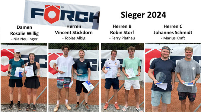 Am Wochenende vom 5. bis 7. August wurde die 13. Auflage des Förch-Cup auf der Tennisanlage des TC Oedheim bei sommerlichen Temperaturen ausgetragen. Auch dieses Jahr wurde die Herren A-, sowie die Damen-Konkurrenz im Rahmen eines Ranglistenturniers ausgespielt. Die Konkurrenzen der Herren B und C fanden wie gewohnt als klassisches Leistungsklassen-Turnier statt.