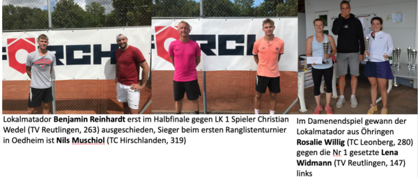 Am Wochenende vom 05.08. – 07.08. fanden sich mehr als 80 Spielerinnen und Spieler aus ganz Deutschland auf den Anlagen des TC Oedheim und der TA TSV Neuenstadt ein, um die Sieger in den Kategorien Herren A (LK 1-12), Herren B (LK 10-18), Herren C (LK 16-23) sowie Damen (LK 1-23) zu ermitteln.